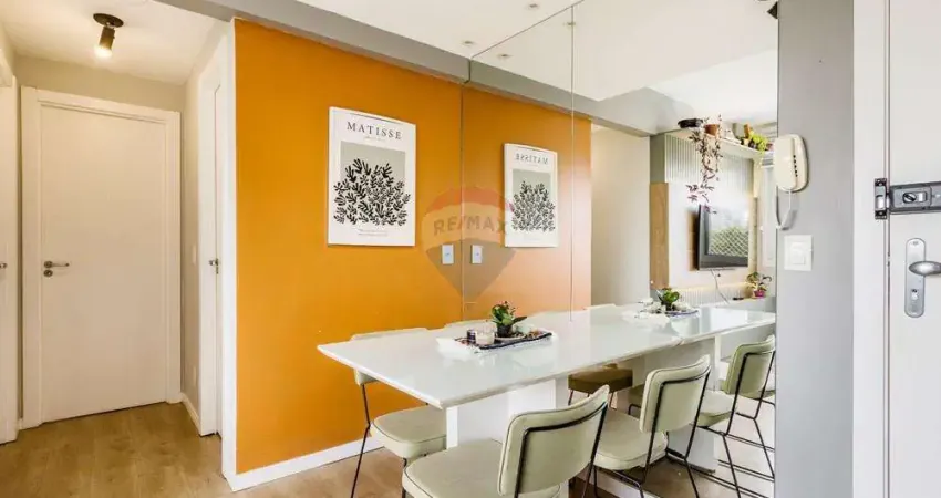 Apartamento impecável de 2 dormitórios, 2 banheiros sendo 1 suíte, com excelente padrão de acabamento. Ambientes bem distribuídos, com cozinha americana integrada à sala de estar, churrasqueira privativa e móveis planejados e ficam Cooktop, Junker, chuveiros a gás que permanecem no imóvel. Conta ainda com split instalado, piso laminado, ótima orientação solar oeste, garantindo ambientes ensolarados e bem arejados.