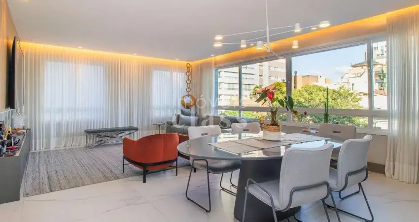 Com 140 m² de área privativa, o imóvel apresenta um projeto de interiores primoroso, com decoração e mobiliário selecionados para compor um ambiente contemporâneo e acolhedor. O living, integrado em três ambientes, é perfeito para receber convidados com elegância, enquanto a cozinha americana agrega modernidade e funcionalidade ao espaço.