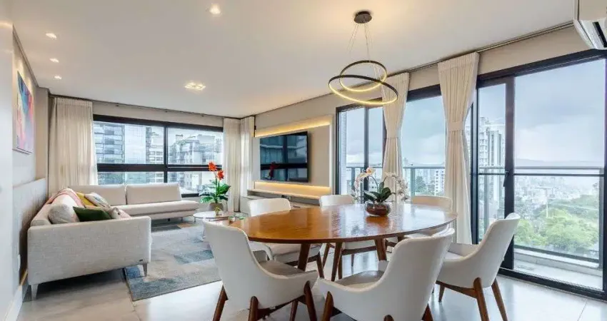 Este apartamento exclusivo oferece uma confortável vida urbana com 122m² de espaço bem aproveitado. Com janelas do piso ao teto que inundam o living de luz natural, ele conta com uma sacada, lareira e lavabo, além de uma cozinha americana com churrasqueira e área de serviço separada. A área íntima possui duas suítes, com potencial para transformar uma delas em um terceiro dormitório. Com duas vagas de garagem cobertas e depósito, o imóvel combina praticidade e estilo. No condomínio, a infraestrutura de rooftop inclui piscina, salão de festas e portaria virtual, localizado próximo a diversos recursos essenciais da região. Preço e disponibilidade do imóvel sujeitos a alteração sem aviso prévio.