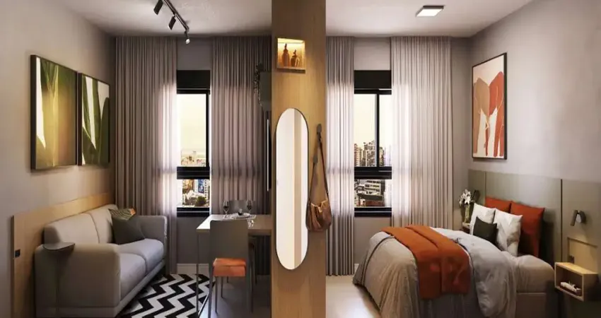Com uma suíte aconchegante, banheiro social e uma vaga de garagem, o apartamento oferece a funcionalidade perfeita para casais, profissionais ou pequenas famílias. A planta bem distribuída aproveita cada metro quadrado, garantindo conforto no dia a dia.