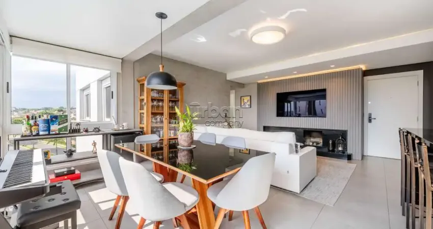 Urban Select está vendendo um apartamento semimobiliado no bairro Central Parque, com 83m² de área privativa, 2 dormitórios, sendo 1 suíte, e 2 vagas de garagem. O imóvel possui uma cozinha americana, um amplo living para 2 ambientes com lareira e churrasqueira, além de boa iluminação natural, sol da tarde e uma vista definida. O apartamento conta ainda com área de serviço e banheiro social.