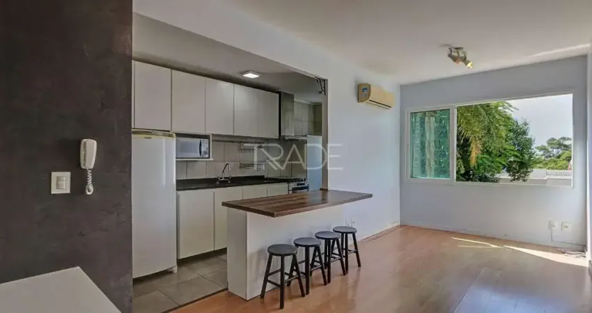 TRADE vende apartamento semimobiliado de 2 dormitórios, sendo 1 suíte, com 1 vaga de garagem no bairro Cristal, zona sul de Porto Alegre.
