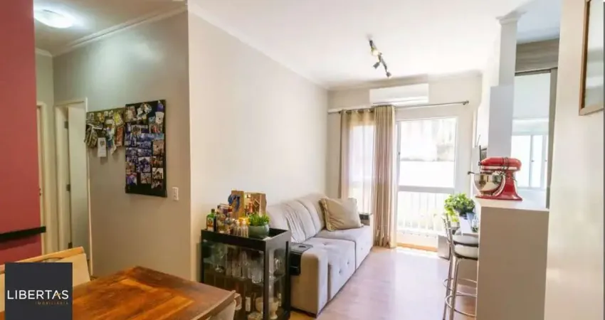 Imóvel semimobiliado, com excelente luminosidade natural e ventilação cruzada. Possui 2 dormitórios, sendo 1 suíte, living amplo para dois ambientes, banheiro social e cozinha com móveis sob medida e churrasqueira. Permanecem no imóvel 2 splits inverter LG, a cozinha planejada, roupeiro sob medida na suíte, guarda-roupa no segundo dormitório e os móveis dos banheiros. Conta ainda com área de serviço independente e vaga de garagem escriturada. Condomínio com infraestrutura completa, composto por piscina, academia, salão de festas, brinquedoteca, portaria 24 horas e mercado autô(link removido) mais informações e agende uma visita! Estudamos seu imóvel no negócio. Além deste, mais de 25 mil opções em nosso site.