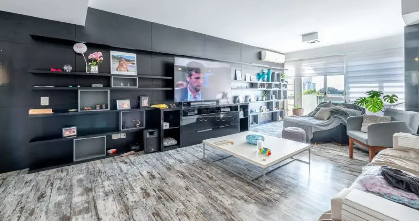 Apartamento semimobiliado com 115m² privativos, 2 dormitórios, closet na suíte, banheira de hidromassagem, living para 2 ambientes, sacada aberta com vista, cozinha integrada ao ambiente social e área de serviço separada.