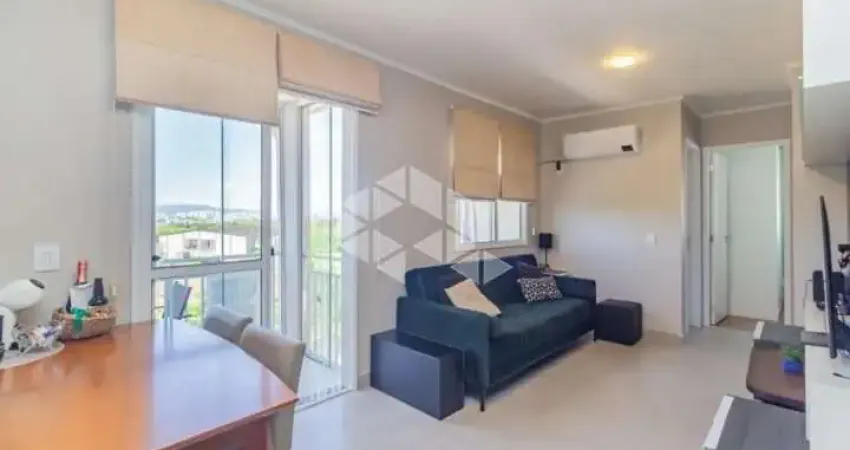 Apartamento com 2 dormitórios, sacada, vista panorâmica, cozinha com área social integrada, banheiro e vaga de garagem no bairro Humaitá em Porto Alegre.