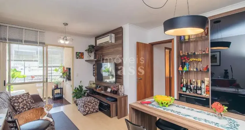 Apartamento mobiliado, com 69m2, 2 dormitórios e 1 suíte. Possui sacada com churrasqueira, living para dois ambientes, cozinha planejada, área de serviço e ar-condicionado split na sala e nos dormitórios. Conta ainda com gás central e medidores individuais de água. Em andar alto, é um imóvel ensolarado, bem ventilado e com ótima iluminação natural.