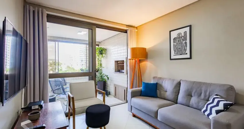 Apartamento de 69 metros privativos. Ampla sala dois ambientes, sacada com churrasqueira e split.