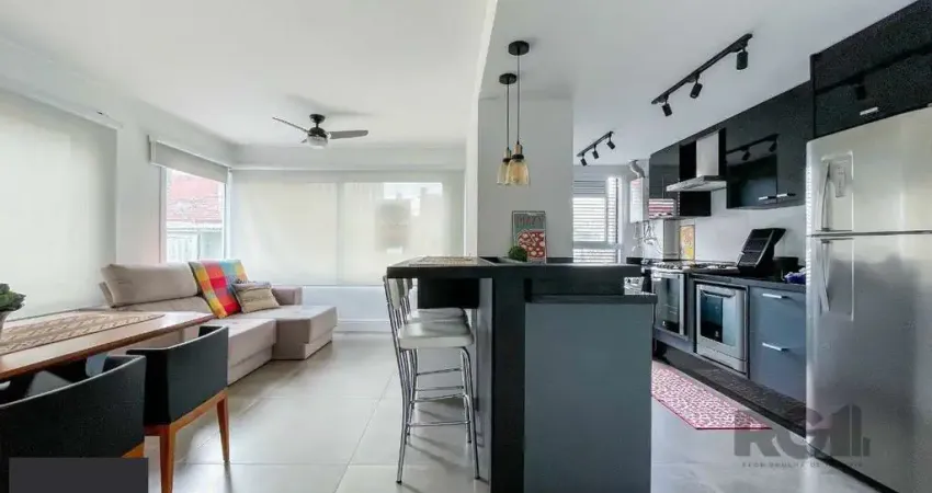Apartamento novo de 70m², mobiliado e muito bem decorado, 2 dormitórios, sendo 1 com suíte e o outro transformado em escritório / sala de estudos, ambos com ar condicionado, assim como o living de 2 ambientes. A cozinha é planejada e equipada com armários, elétros e churrasqueira. Conta com mais a área de serviço, 1 banheiro social, 1 suíte e 1 vaga de garagem com depósito. Disposto em andar intermediário, de frente, com orientação solar Norte / Oeste. Condomínio novo, elevadores, gás central, jacuzzi, academia, salão de festas, espaço zen, portaria e zelador. Localizado no bairro Menino Deus, próximo ao Shopping Praia de Belas, academia, Hospital Mãe de Deus, farmácias, transporte público e demais facilidades do bairro. Agende sua visita para conhecer. Preço e disponibilidade do imóvel sujeitos a alteração sem aviso prévio. Estudamos seu imóvel no negócio. Além deste, mais de 25 mil opções em nosso site.