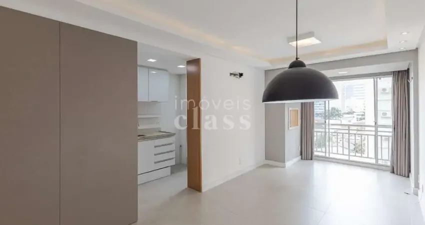 O living para dois ambientes é integrado à cozinha americana, criando um espaço moderno e acolhedor. A sacada com churrasqueira integrada ao living amplia a área social e é ideal para momentos de lazer.