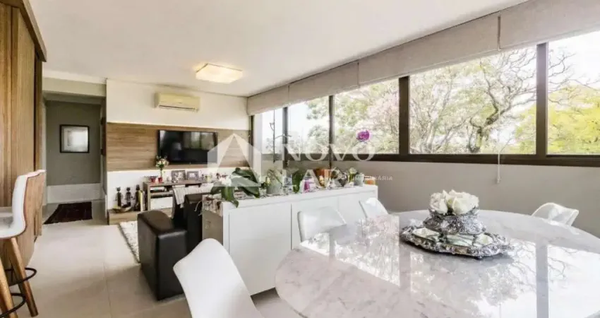 Apartamento no bairro Petrópolis de 2 dormitórios sendo 2 suítes, planta muito bem distribuída com móveis planejados, banheiros em ventilação natural, lavabo, living 2 ambientes, cozinha americana com churrasqueira