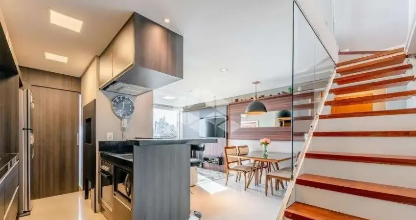 Maravilhoso apartamento diferenciado com 75m² privativos, composto por 2 dormitórios, sendo 1 suíte. O living para dois ambientes com lareira e churrasqueria com pé-direito duplo, integrado a mezanino com uma terceiro dormitório. Conta ainda com cozinha em conceito aberto e lavanderia, em um ótimo padrão construtivo que une conforto e praticidade. O imóvel conta com 2 vagas de garagem.