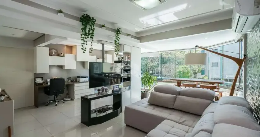 Apartamento originalmente de 3 dormitórios transformado em 2 dormitórios (1 suíte) de fácil reversão com living para 3 ambientes, lavabo, cozinha americana, área gourmet com churrasqueira à gás, área de serviço separada e banheiro social. Vista para a copa das árvores e excelente posição solar norte. Ambientes com abundante iluminação e ventilação natural. Possui 2 vagas de garagem escrituradas, individuais e cobertas.