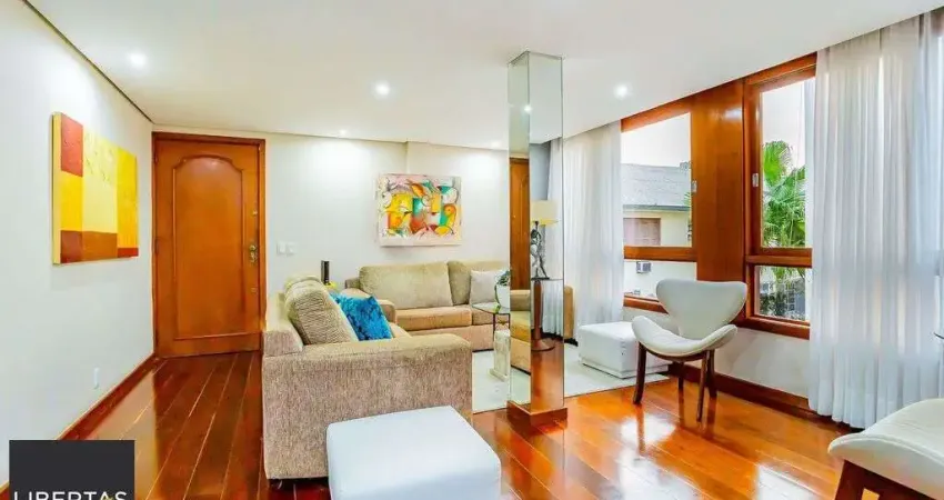 Ótimo apartamento com 107,11m² de área privativa no bairro Higienópolis! O imóvel é composto por amplo living para dois ambientes, churrasqueira, cozinha espaçosa, dois dormitórios sendo uma suíte, banheiro social, área de serviço, dependência com banheiro auxiliar e duas vagas de garagem cobertas escrituradas (box duplo). Ótima orientação solar, com ventilação cruzada e muito ensolarado. O condomínio conta com hall de entrada, slão de festas, elevador e porteiro eletrônico. Excelente localização próximo ao Zaffari Higienópolis, Av. Plínio Brasil Milano e Av. Carlos Gomes, Shopping Iguatemi, Colégio Anchieta, com todos os recursos disponíveis nas imediações. Agende já uma visita! Estudamos seu imóvel no negócio. Além deste, mais de 25 mil opções em nosso site.