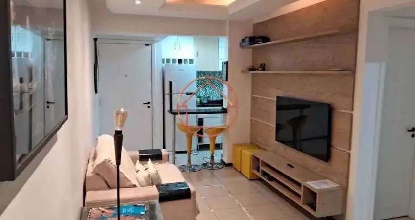 Apartamento térreo totalmente mobiliado a venda, com 2 quartos, sacada com churrasqueira e vaga de garagem.