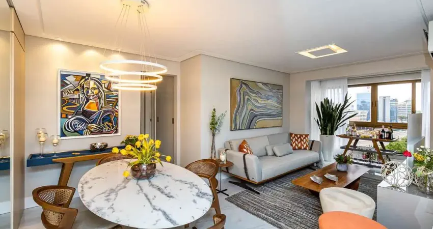 Apartamento impecável, semi-mobiliado, com 2 dormitórios, sendo 1 suíte, e 2 vagas de garagem, no prestigiado bairro Três Figueiras.