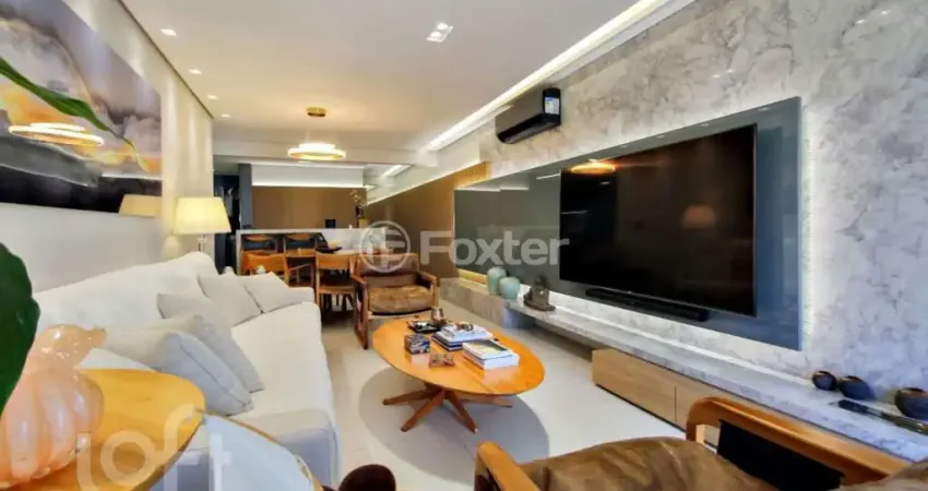 Apartamento alto padrão finamente decorado e semimobiliado com 141,42m² privativos, 2 suítes, living para 2 ambientes e sacada, cozinha americana com churrasqueira e eletrodomésticos da Electrolux linha Home Pró ficará no imóvel e luminárias, gabinete montado, depósito mobiliado com armários sob medida, 02 garagens cobertas com matrículas individuais e área de serviço. Condomínio com infra estrutura: piscina coberta aquecida, salão de festas, brinquedoteca, fitness, playground, espaços para bikes, portaria virtual. Não perca essa grande oportunidade. Agende sua visita com a corretora licenciada.