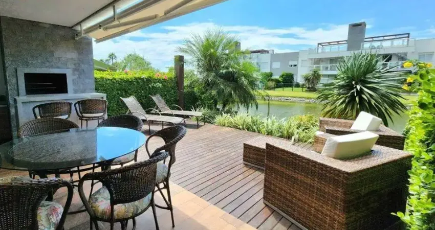 Este apartamento é uma unidade Garden no Rossi Atlântida, à beira do lago. Com 131 m² de área privativa, o imóvel dispõe de 2 quartos, sendo 1 suíte, e 2 banheiros. O apartamento está totalmente mobiliado e decorado, apresentando um amplo pátio privativo perfeito para reunir família e amigos, além de contar com uma churrasqueira. Para maior comodidade, o imóvel oferece 2 vagas de garagem. O condomínio proporciona uma infraestrutura completa, incluindo piscinas, salão de festas, quadras esportivas e playground, com segurança 24 horas.