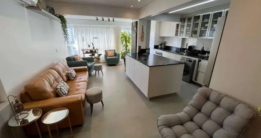 Com 96m² de área privativa, o apartamento apresenta uma suíte e um dormitório, totalizando dois quartos e dois banheiros, além de uma vaga de garagem. O layout foi pensado para proporcionar fluidez, conectando sala, jantar e cozinha em um único ambiente integrado. A iluminação natural amplia os espaços e reforça o clima de bem-estar que marca o projeto.