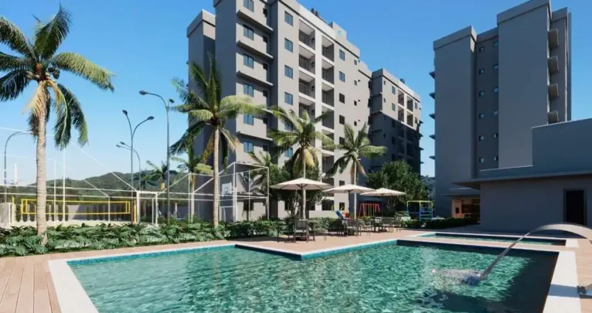 Apartamento com 60,90m² privativos com 2 dormitórios, living integrado a sacada com churrasqueira a carvão, banheiro social, área de serviço e 1 vaga de garagem.