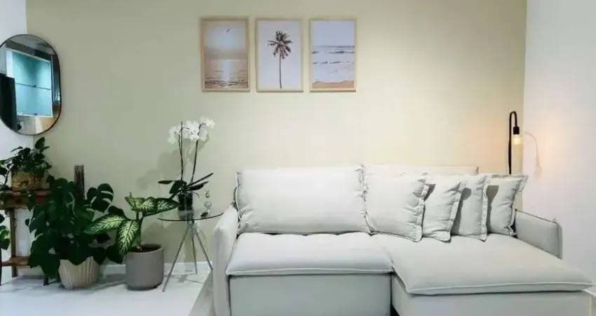 O apartamento conta com 2 dormitórios, sendo 1 suíte, 2 banheiros, sala de estar e jantar integradas, sacada com churrasqueira, área de serviço, água aquecida e ar-condicionado, proporcionando conforto em todas as estações. A planta é funcional e aconchegante, ideal tanto para moradia quanto para investimento.