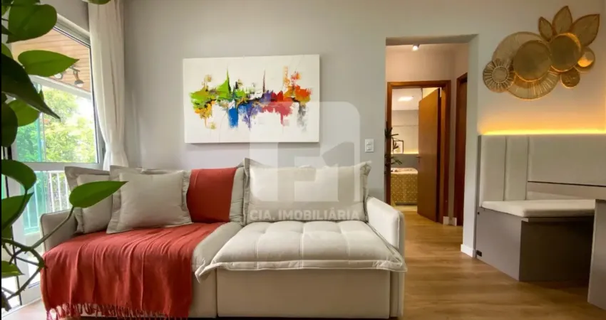 O apartamento possui dois dormitórios bem distribuídos, um banheiro funcional e sala integrada com acesso à sacada, garantindo ótima iluminação e ventilação natural.