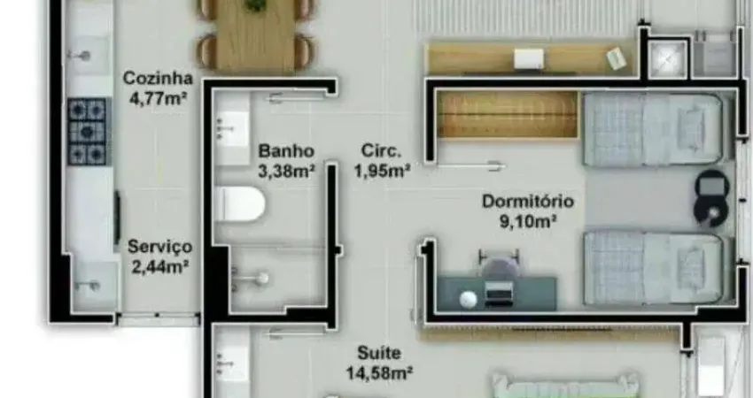 Apartamento de 2 dormitórios (1 suíte), com 63 m² privativos, sacada com churrasqueira a carvão, fechadura digital, persianas motorizadas e excelente padrão construtivo.