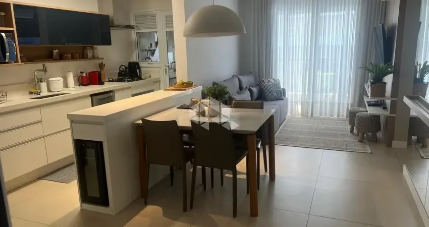 partamento com 2 dormitórios, sendo 1 suíte com sacada, além de banheiro social e lavabo. A cozinha integrada à sala proporciona um ambiente moderno e funcional, ideal para receber amigos e família.