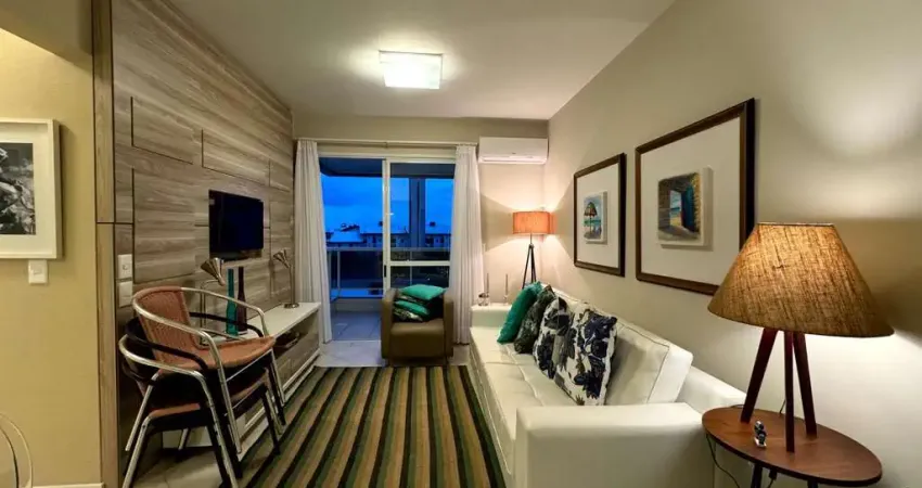 Mobiliado, sacada com churrasqueira, 2 quartos, 1 vaga e área de lazer completa à venda na Praia Brava.