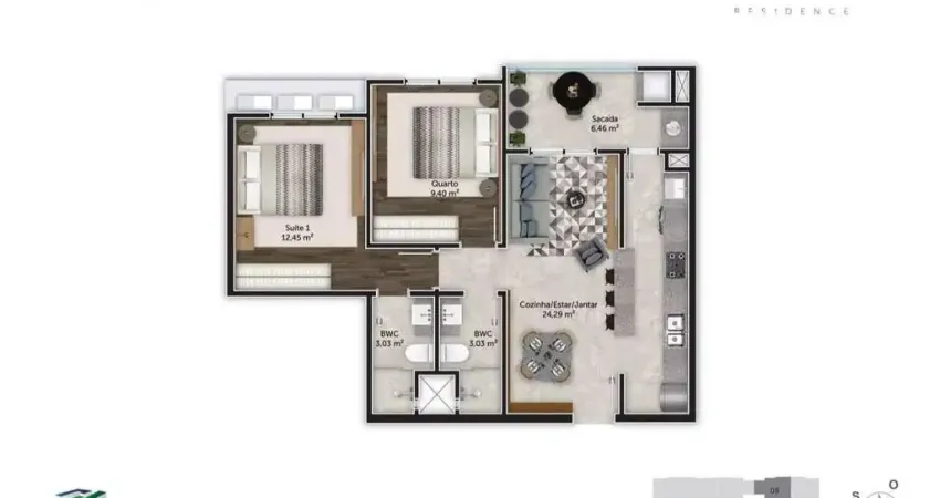 - Apartamento 2 dormitórios (1 suíte)