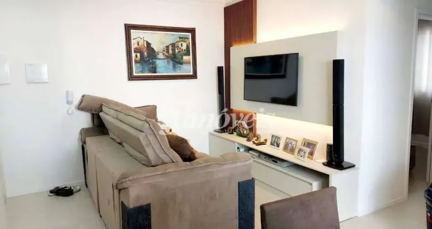Apartamento ensolarado com 1 suíte e 1 quarto, sala de tv e cozinha integradas, área de serviço, sacada com churrasqueira a carvão, 1 vaga de garagem.
