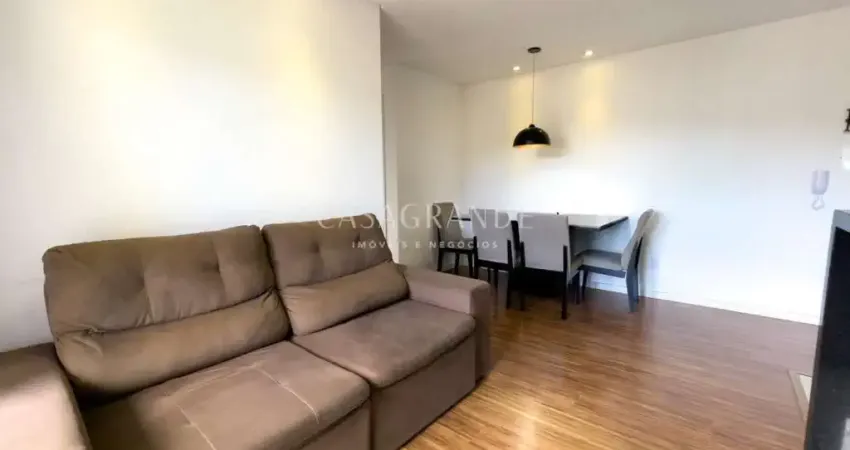 Apartamento semimobiliado com 63m² de área privativa sendo 1 suíte + 1 dormitório e demais dependências. Sacada com churrasqueira.