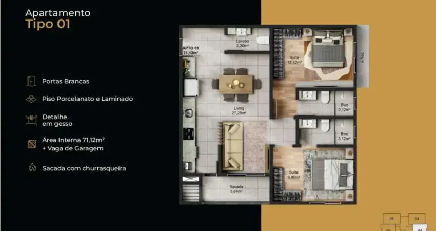 - 71,12m² de área privativa;