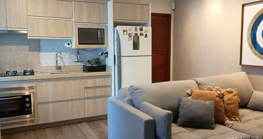 Apartamento 2 dormitórios com móveis planejados na cozinha.