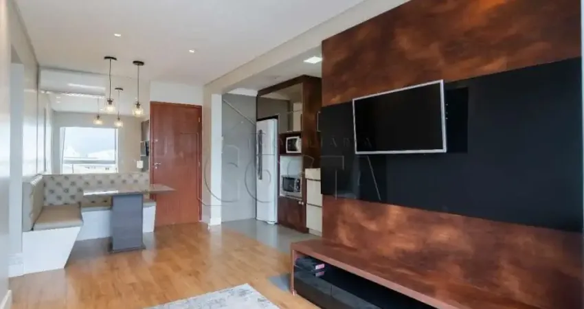 Apartamento semi-mobiliado com 80,00m² de área privativa, 2 dormitórios (sendo uma suíte), 1 banheiro social, sala e cozinha integradas, área de serviço, ampla sacada com churrasqueira e pia, medidores individuais de água, luz e gás, vaga de garagem coberta e privativa, 2° andar, elevador.