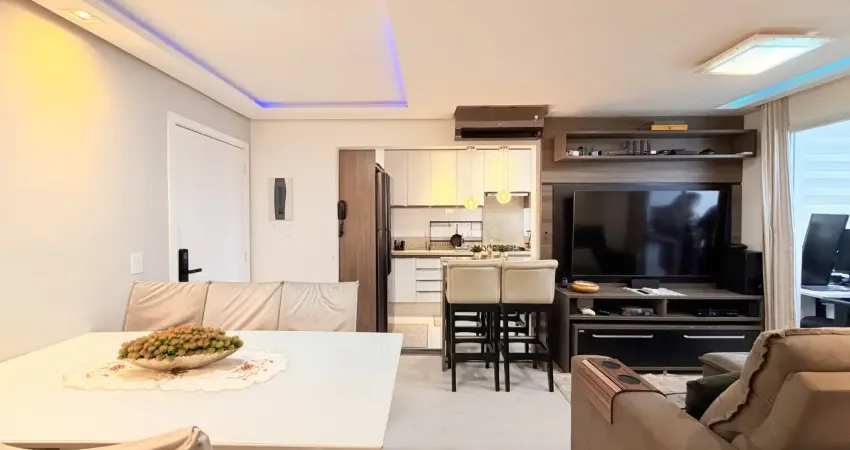Imagine viver com conforto e estilo no Recanto dos Sonhos, em Pagani, Palhoça. Este apartamento mobiliado oferece 61,60 m² de área privativa (71,71 m² total) distribuídos em dois dormitórios aconchegantes, banheiro moderno, sala de estar integrada à sala de jantar e sacada com churrasqueira. Cada ambiente conta com móveis planejados de alto padrão, ar-condicionado instalado, portão eletrônico e sistema de câmeras de monitoramento, garantindo praticidade e segurança desde o hall de entrada até a vaga de garagem exclusiva.