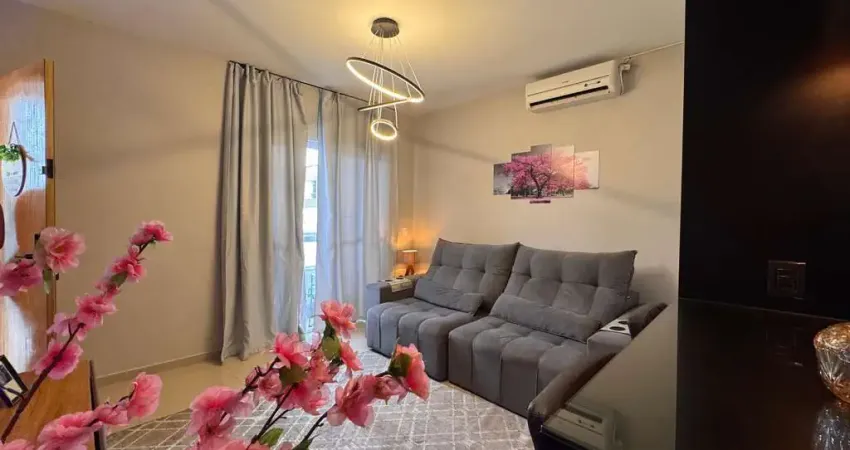 Apartamento com suíte, lindo, semi-mobiliado e pronto para morar, ideal para quem busca conforto, praticidade e um excelente aproveitamento dos ambientes. A cozinha conta com móveis planejados, bancada em mármore e depurador, oferecendo funcionalidade e elegância no dia a dia. A sala é acolhedora e bem decorada, permanecendo com ar-condicionado, sofá, rack e itens decorativos que valorizam o espaço.