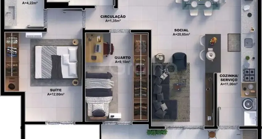 Excelente oportunidade na Pedra Branca! Apartamento com 2 dormitórios, sendo 1 suíte, 1 vaga de garagem, localizado a apenas 200 metros do Passeio Pedra Branca, uma das regiões mais valorizadas e desejadas da cidade.