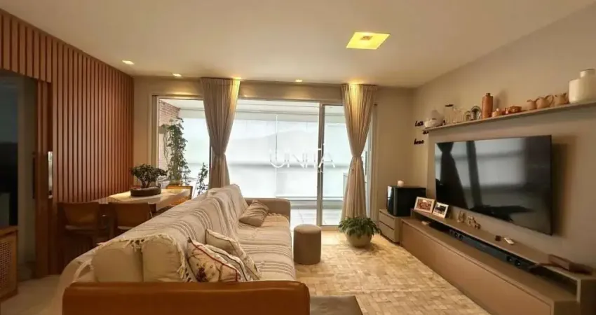 suíte master completa. O imóvel possui sala integrada à cozinha, sacada com churrasqueira a gás e excelente posição solar garantindo luminosidade natural. Inclui todos os móveis planejados e eletrodomésticos embutidos, estando pronto para morar.