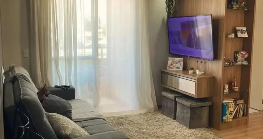 O imóvel possui dois dormitórios, sala integrada, cozinha com lavanderia separada e sacada com churrasqueira, piso laminado. Fica no imóvel os móveis planejados.
