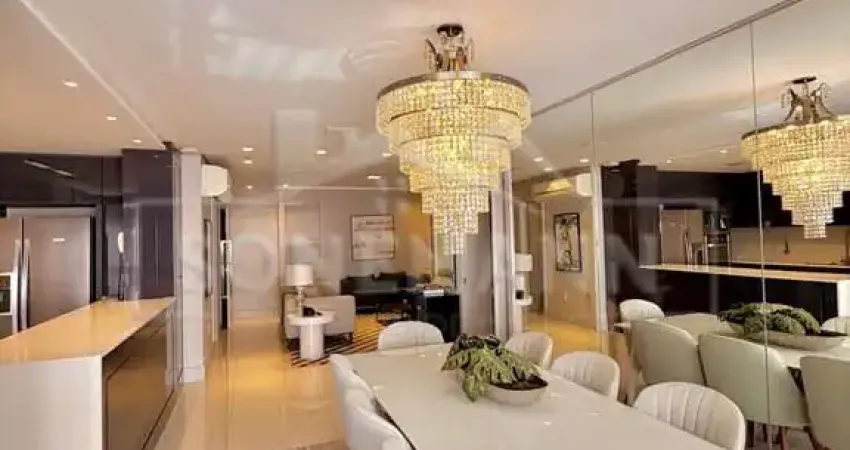 143 Mt privativos, transformando em duas suítes, sendo uma master, amplo closset, sala para três ambientes, cozinha americana com móveis planejados, área de serviço separada, lavabo, sacada fechada com churrasqueira.