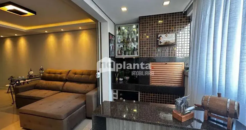 Lindo apartamento à venda, totalmente mobiliado e decorado com muito bom gosto! Possui 2 dormitórios, sendo 1 suíte, sala de estar e jantar integradas, iluminação em LED, painel decorativo e cristaleira planejada. A varanda gourmet com churrasqueira a carvão, bancada em granito e fechamento em vidro é um verdadeiro destaque para quem gosta de receber.