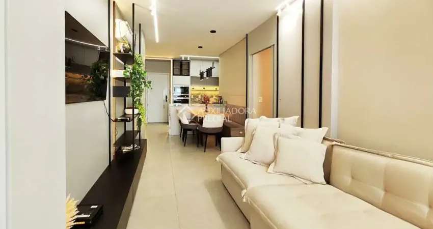 Elegante e bem distribuído, o imóvel conta com cozinha e living integrados, sacada compartilhada com quarto e sala e equipada com churrasqueira.