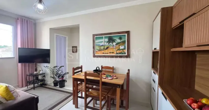 Apartamento com 55 metros no condomínio Spazio Beach, dois dormitórios, banheiro, sala de TV, sala de jantar, cozinha integrada com lavanderia, ambientes integrados, uma garagem coberta e porcelanato em todo o imóvel.