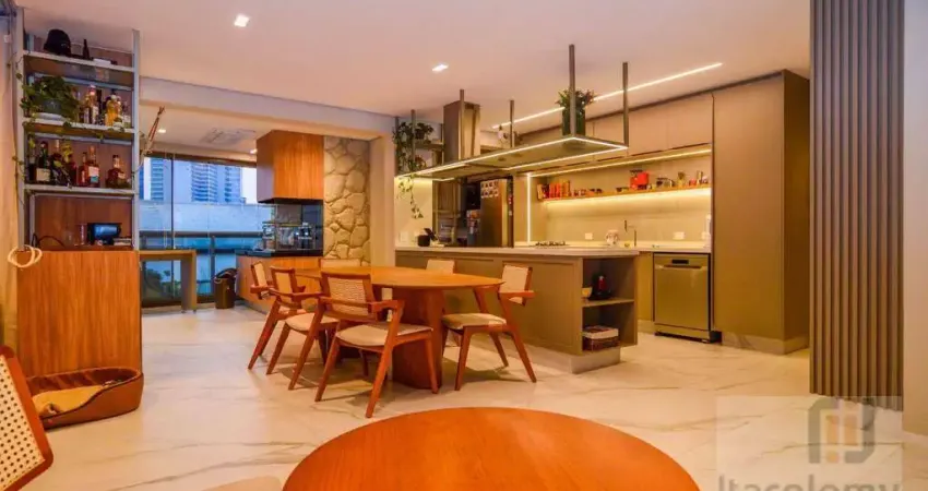 Apartamento totalmente mobiliado para venda no Condomínio Edifício Level, em Alphaville. Conta com 123 m², 2 suítes, amplo living com sala de estar e sala de jantar, lavabo, cozinha, área de serviço com lavanderia, depósito no andar, varanda gourmet envidraçada, churrasqueira, andar alto e 2 vagas cobertas de garagem.