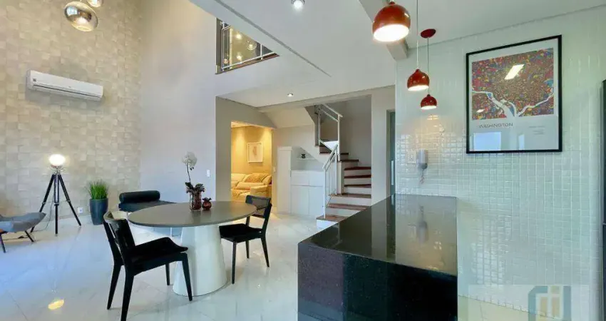 Apartamento duplex para venda no Condomínio Edifício Novare, Alphaville. Conta com 134 m² de área útil, 2 suítes sendo a suíte master com closet e sacada, ar condicionado, amplo living com sala de estar e sala de jantar, cozinha repleta de armários planejados, área de serviço com lavanderia, lavabo, amplo varanda gourmet, andar gourmet e 2 vagas cobertas de garagem.