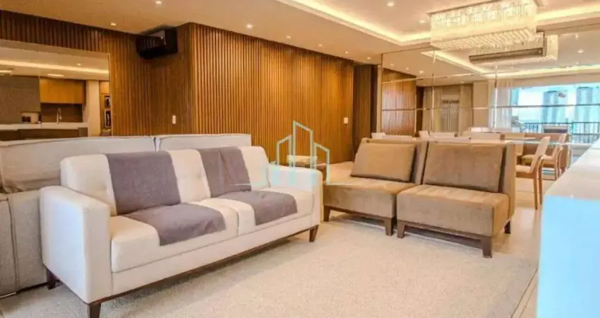 2 dormitórios suítes, lavabo, sala integrada a cozinha e varanda gourmet com churrasqueira e fechamento em vidro, 3 banheiros, depósito e 3 vagas de garagem