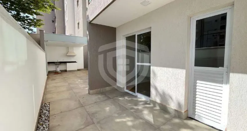 Apartamento térreo com quintal no condomínio Quinta Ranieri Gold. São 2 quartos, sendo 1 suíte, e 2 vagas de garagem. Conta com cozinha, área de serviço, sala de estar e jantar, churrasqueira e chuveiro à gás com aquecedor.
