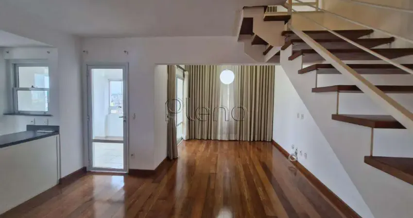 Apartamento à venda e para locação no Cambuí, em Campinas. Duplex com 104 m² de área útil, 2 suítes com armários, living 2 ambientes com varanda gourmet, lavabo, ar condicionado, cozinha americana planejada, área de serviço, banheiro de serviço e 2 vagas de Garagem. Lazer com piscina com raia de 25 m², academia, salão de festas. biblioteca, sala de reuniões e sauna e possui portaria 24 horas.
