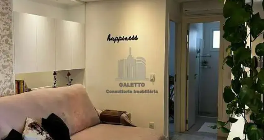 Lindo, rico em detalhes e bem planejado, sala para dois ambientes, cozinha americana, área de serviço, 2 dormitórios sendo 1 suíte e sacada gourmet com churrasqueira.