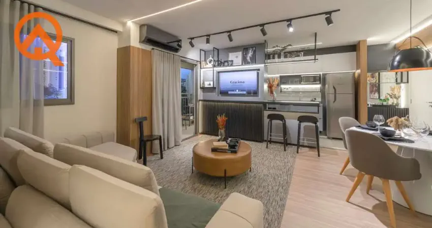 O Imóvel: Sala Living e Ampla para dois ambientes (Sala de Jantar e Sala de Estar), integração com a Varanda Gourmet e Cozinha, apresentando ótima luminosidade e ventilação. Varanda Gourmet com excelente dimensão em Andar Alto acompanhada pelo Sol da Manhã, Churrasqueira a Carvão, que lhe proporcionará momentos de descontração e bem-estar com a família e amigos. Cozinha espaçosa com disposição para grandes armários planejados, Pia em Granito e Cuba em Inox. Lavanderia / Área de Serviço como extensão da Cozinha. 2 Quartos (1 suíte) com excelente espaço e disposição para armários planejados, sendo que a Suíte tem espaço para Closet. 2 banheiros (Suíte e Social), com excelente acabamento e revestimentos até o teto na área do Box. Infraestrutura para Aquecimento a Gás. Infraestrutura para Ar-Condicionado. Áreas molhadas com Piso Porcelanato. Áreas secas com Piso Laminado. 1 Vaga de Garagem Coberta e demarcada.